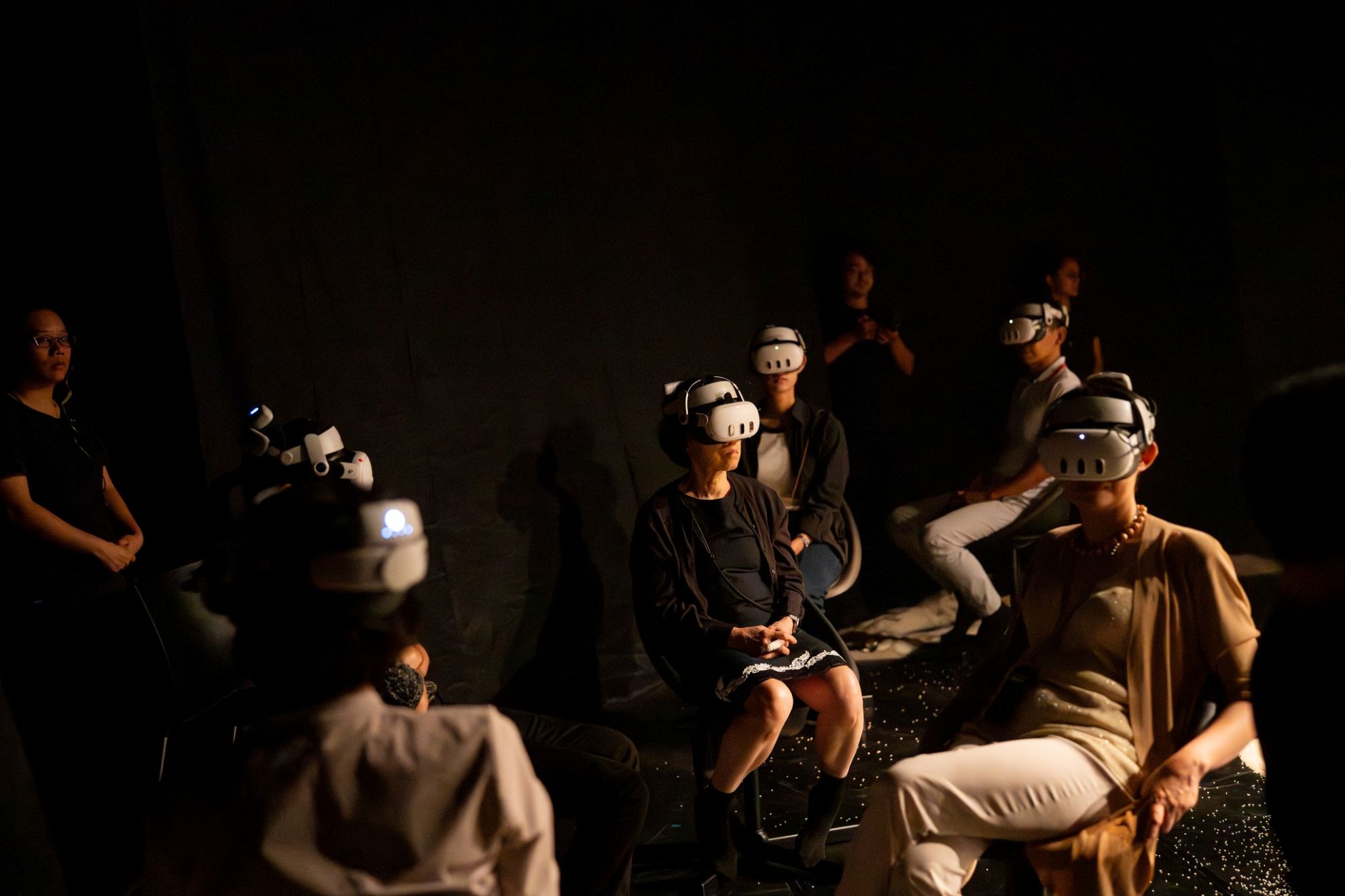 首先,關於這具肉身的沒有界域,還得依靠3D數位虛擬影像才能力逮其概梗;這是第三階段,觀眾在座椅上配戴VR眼罩顯示器,進入了全域環景的視覺奇觀,在此,林投姐以其縮放尺度(scaling)的能力,若不是使自己肉身變得極大,便是讓觀眾的身軀變得極小,以營造出她肉身之巨大或廣袤無垠。於是,是觀眾的繞行,對價於觀落陰的迴圈,而其意義在於尺度的變異;一是前述提及,發生在兩個隔間之間,二是發生在她的肉身與其靈異影像之間,也就是在等人身與後者的超級身形之間。然而,林投姐這個角色只是此劇的起頭,它的在地民俗符碼也是,因為何曉玫的編舞,解離了這個符碼,是從它那裏汲取、轉化為帶往另一個向度的異能量。這是什麼能量?借用德勒茲與加塔利合著的《千高原》提到的「迴旋曲」(ritournelle),它有三種彼此競逐的力:渾沌之力、土地之力、宇宙論之力【1】——在VR擬像裏,林投姐便顯現了土地被她席捲為一種「暗黑」宇宙的威能。這種「暗黑」,有扣連日本舞踏在日語上的「ankoku」但又不全然是的涵義,且舞踏自身也有更深於土方巽與後繼者大野一雄的說法:替十九世紀歌舞伎(kabuki)的文化請命,日本二戰後以戰敗者面對現代西方的文化反抗——換句話,舞踏不總是這樣。那會是什麼呢?
