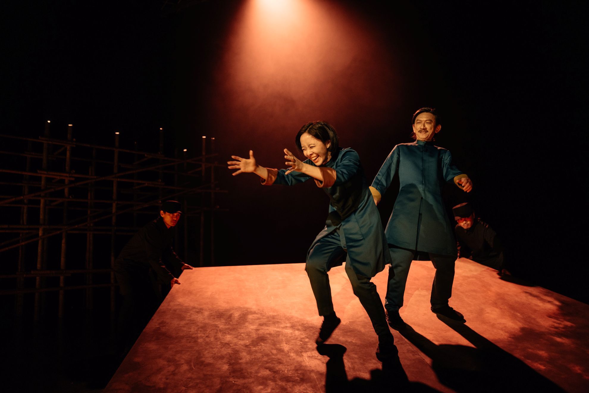 關於新身分的建構與西方願景的吸引力,在表演層面上更是透過頻繁的角色互換,讓身分轉向的概念脫離了單純的文本層次,進一步延伸至舞台上演員身體的物質性展現。