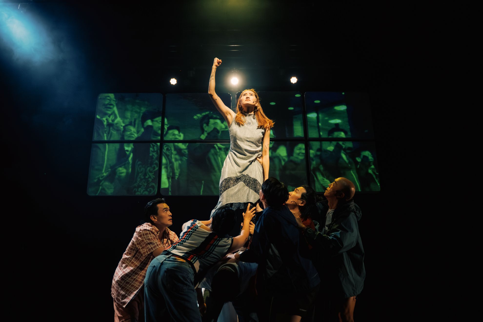 就在化個體為團體的激情燃起之際,Ihot Sinlay Cihek/卓家安瞬間收起炒熱氣氛的主持態度,開啟長段獨白,吐露只占台灣人口比例百分之2.5的原住民,總是在「相忍為國」的共同訴求下被排除在外,戳破對於「集體性」一廂情願的想像,呈現強而有力的反轉。一路鋪陳至此,藉由「認知-情緒-批判」推進觀眾內心反應,反倒像是藉由群體之異質性,反身質疑眼中看見的自己。