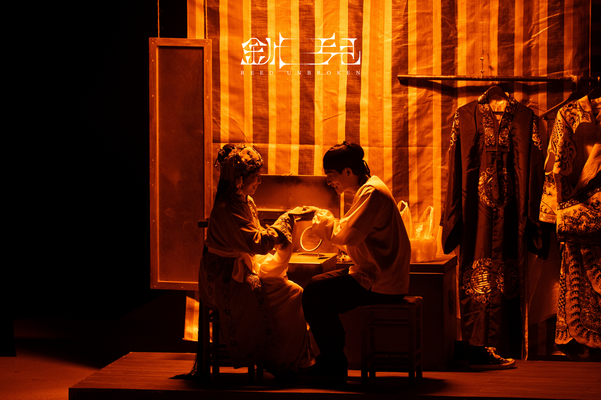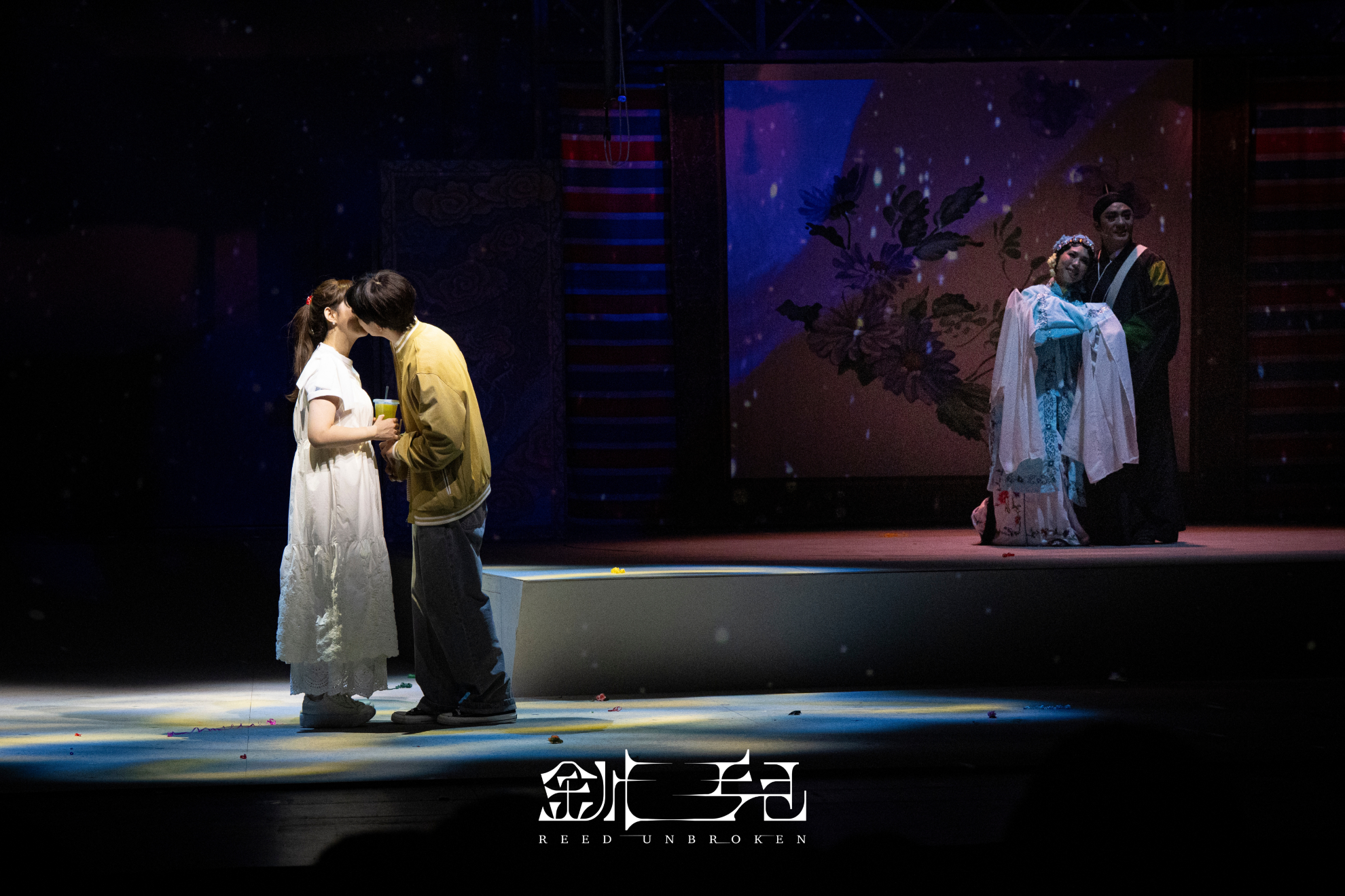 這種失衡,也與舞臺上同時存在節奏風格迥異的表演型態有關。寫意的歌仔戲身段,與節奏強烈、能量外放的歌舞表演,在開場階段尚未找到共同的呼吸節奏,使戲劇能量未能完全聚焦。相較十年前戶外場自然生成的「野味」——觀眾聲息、環境音與表演混雜共振——劇院版的開場雖更加精緻,卻也顯得收束而內斂。這種差異可從接受美學(Reception Theory)【1】的視角去理解,作品的意義與價值並非單靠文本或表演本身,而是透過觀眾的接受行為生成;對於那些不同背景、經驗與期待、歷時或共時的觀眾,因此,在劇院鏡框與戶外野臺的觀看中,會有截然不同的情感落差。