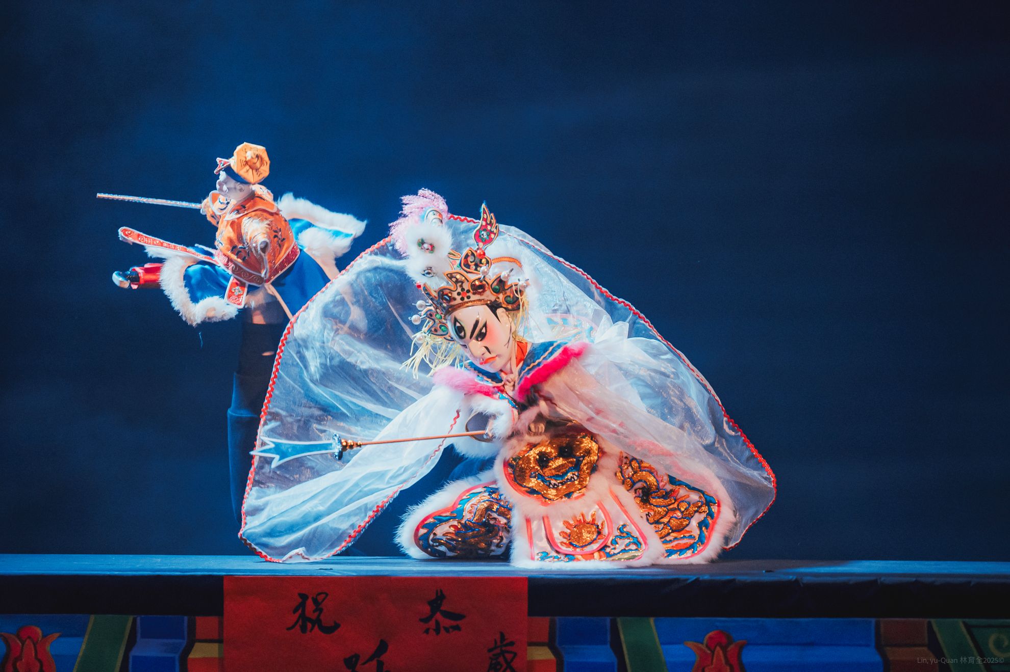 和解是《鬧・NOW》的文本主題,與充滿衝突性、對比性的觀戲體感,形成有趣對比。筆者一方面覺得演出很接近廟口文化體感,競演形式基本上是廟口酬神戲的常態,明白團隊意圖直接讓觀眾沈浸式感受與神同慶的喧鬧和祝福。一方面有些遺憾,雖然金光布袋戲與傳統布袋戲並沒有優劣討論的必要性,但當兩者在戲劇結構中多次並陳後,開始出現美學表現的局限性。這場體感與美學的衝撞,始終沒有超出對比的階段,沒有帶出對布袋戲美學更進一步的和解或共融想像。而且,藝師認輸就火燒自己戲棚的最終幕,救火而不是救戲的結局,完全打斷美學討論的可能性,直接掐熄這齣戲進入美學辯證的火苗。