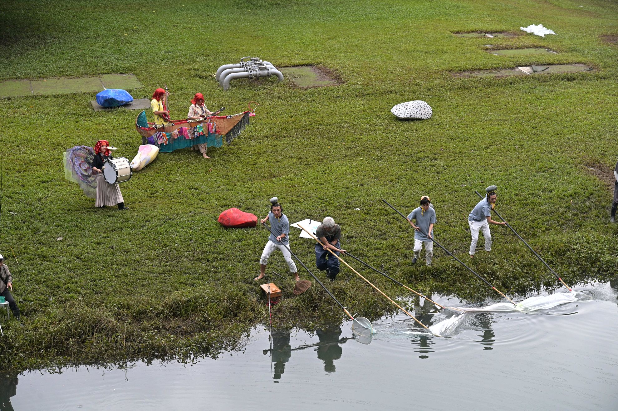 由柯德峰、高琇慧創立於2015年的天團,其作品以多樣性、非正規、溢出定義的表現形式著稱,難以定義。只見遊藝表演團過橋之後,把觀眾留在此岸,他們則在對岸萬盛溪注入新店溪的寬闊草地上,翩然起舞,魚龍蚌戲,連同原本在溪邊釣魚的人也一併融入,消泯現實與想像的邊界,彷彿夢境成真,展現出一種「藝」的純粹美好。