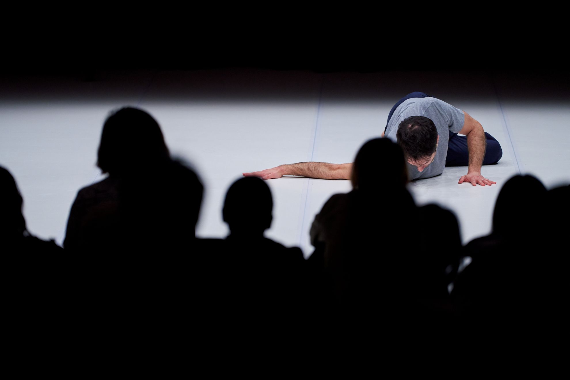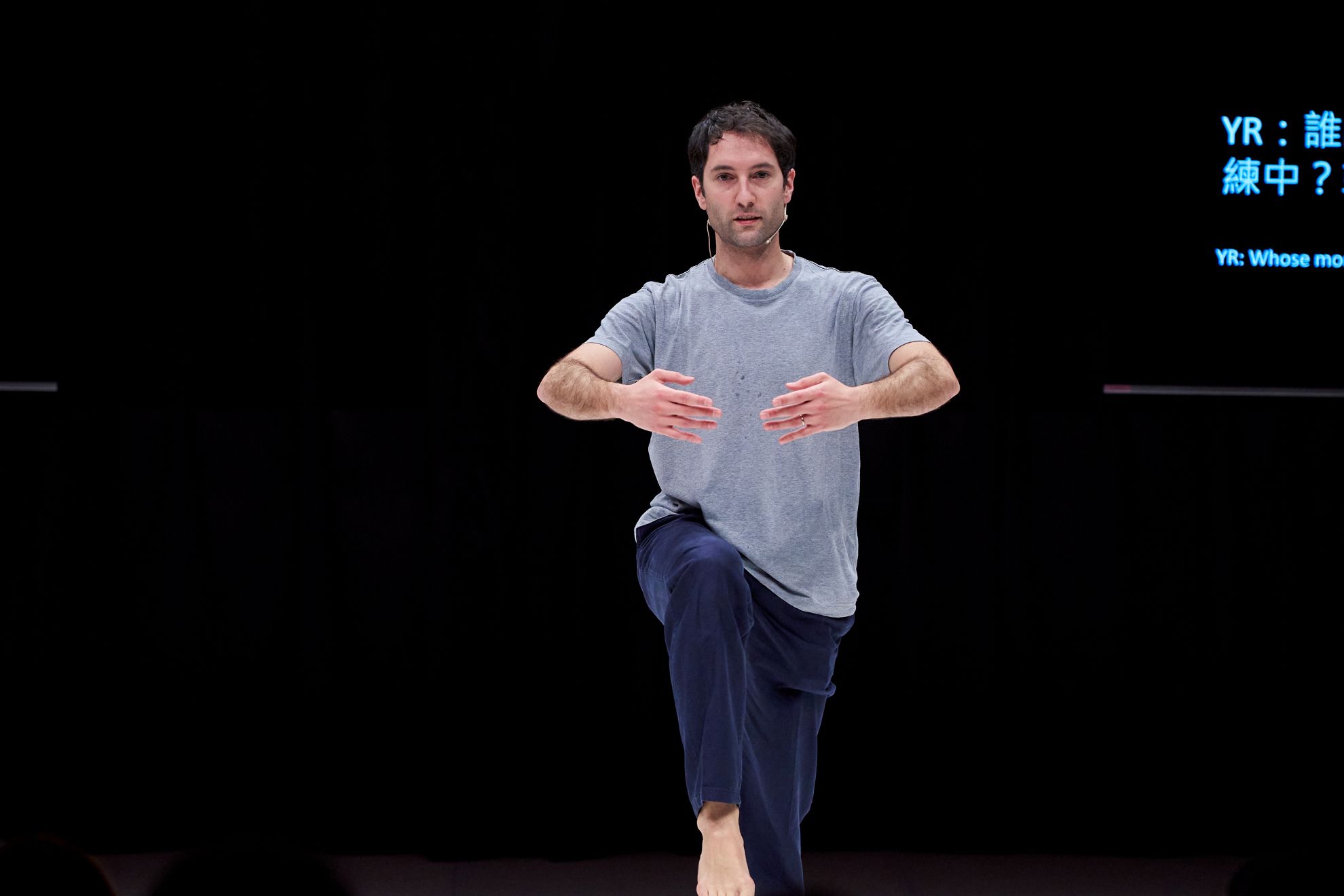 隨後,蘇里耶持續在語言與動作之間穿梭:談論伊馮娜.瑞內與崔莎.布朗的對話時,身體仍持續舞動。語言與動作成為兩條平行軸線,讓人難以判斷他是在質疑語言,抑或反思身體——當語言無法媒合動作時,語言成為獨立媒介;當身體不受語言輔助時,它又轉瞬成為被觀看的殘餘,等待觀者為其賦意。這層折衝在他談及身體於社會運作中被物化的處境時更為凸顯。他自述偏好將自身置於「旁觀者」(observer),以便獲得片刻的主體性;然而對於觀看者來說,語言、動作和引用之間的缝隙依舊將蘇里耶推向客體位置。尤其當他以幾何作為身體理解的基礎時,反使我們更意識到:唯有看見語言如何形成框架,我們才可能談論「跳脫框架」。