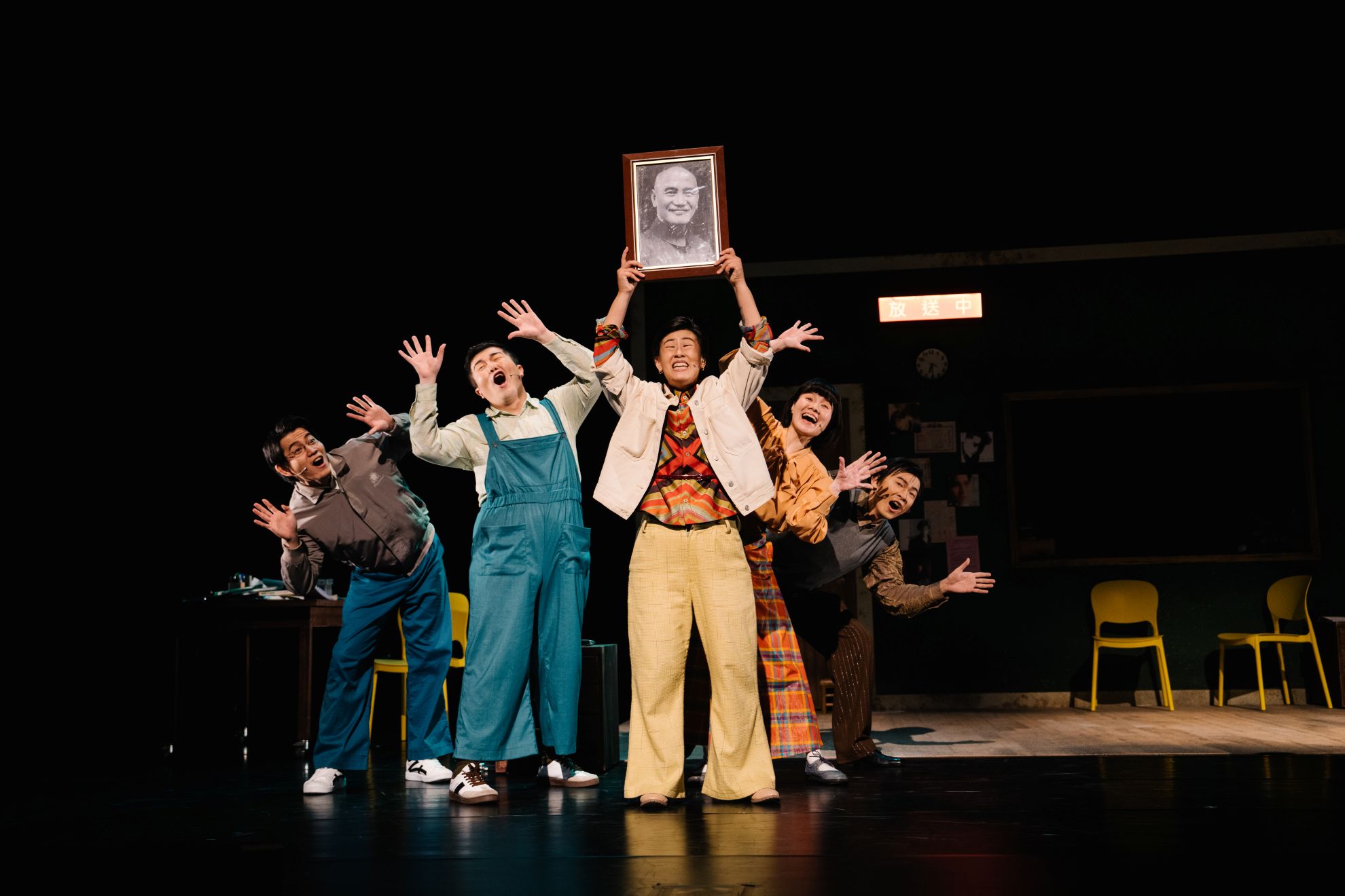 這些語言上的轉化,清晰地描繪了角色在特定環境下進行自我審查和語言扭曲的狀態。然而,當語言被壓抑到極限,音樂成為了解放的出口。由林謙信編作詞曲的音樂風格充滿搖滾的能量與反叛精神,演員們強勁的演唱聲線與豐富的歌舞編排成為了極具爆發力的表達。這種「音樂的解放」與「文本的壓抑」之間的巨大對比,讓臺語從被審查的語言,轉化為充滿能量的音樂表達。此外,劇中最具顛覆性的政治諷刺,透過政治領袖「圖像照片」的視覺符號與「當代戲劇手法」的結合。導演選擇以「放屁」的意象來嘲諷過去權力核心的代表,將威權時代「神聖不可侵犯」形象的徹底解構與去魅化。