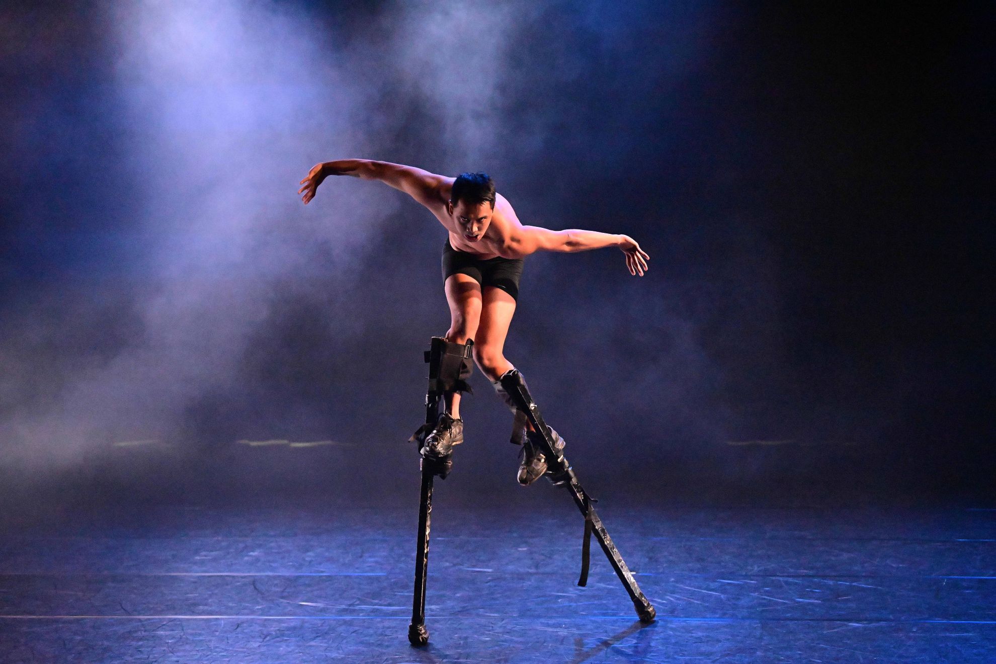 在明確定位自身的身體歷史後,Albert 展演一系列其所學的民族舞形式,包括赤膊的戰鬥舞蹈、凶狠的面部表情、咧開的嘴型,並搭配低沉的嘶吼與厚重的步伐,使其意圖呈現的角色與情境一目了然。隨後,他轉而表演踩高蹺,並指出這是他所學的第一種表演形式,也是他首次透過表演藝術建立自我認同的起點。曾經的國際交流經驗,使他意識到:身體似乎必須具備某種可被辨識的技能,才能向他人說明「我是誰」。