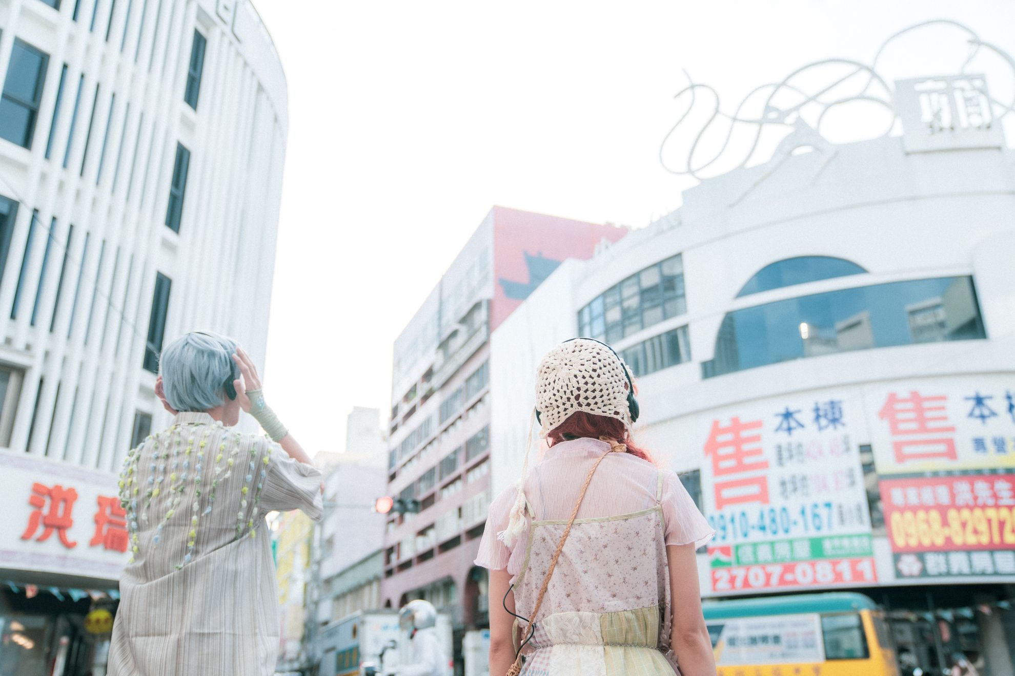 對照去年與今年演出時「南夜大舞廳」的照片,僅僅時隔一年,今年又多掛上了仲介出售中的巨大廣告布幔,建物原先由藝術家王水河設計的優美立面被遮蔽,阿綠與小櫻在舞廳斜對面的路口跳了一支舞,旋律和舞步動人,但舞結束了前往下一處,我們似乎仍無計可施。