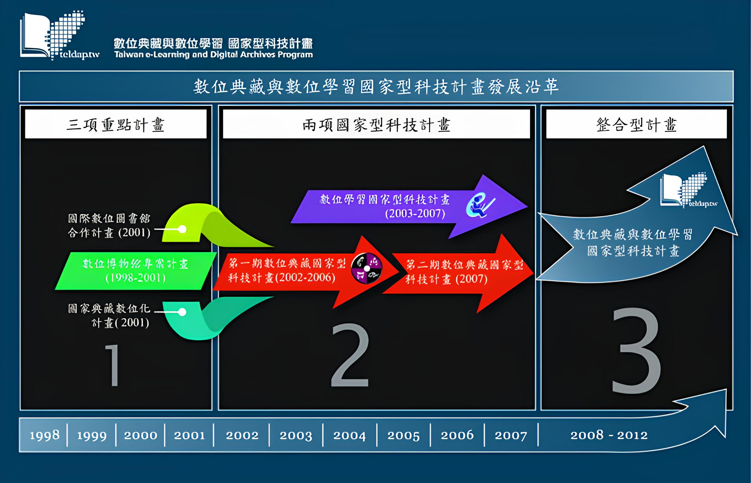 數位典藏與數位學習國家型科技計畫發展沿革(圖片取自數位典藏與數位學習國家型科技計畫網站)