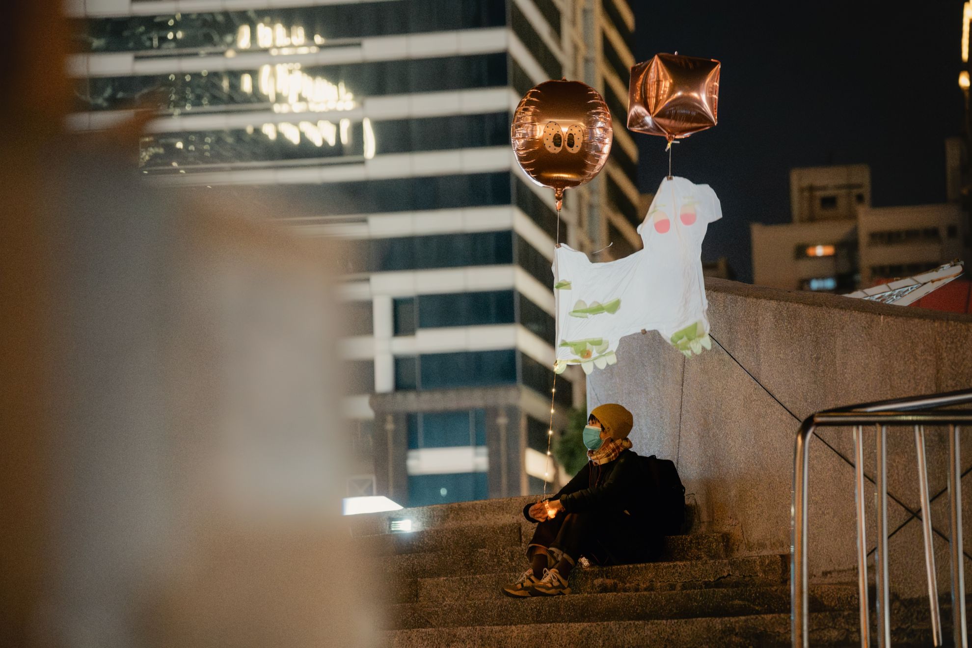 而原型樂園作品形式的必要性,便在於它將「無法現身」轉化為「聲音在場」,在移工藝術參與法規的模糊地帶中開闢出主體自述的空間,正如每一篇聲音故事的開頭,皆為受訪移工穿插說道:「因為無法到現場參與,所以在這裡與你們相遇。」並且,值得一提的是,其敘事內容的「寵物照護經驗」正也是另一種勞動的灰色地帶,產生了制度與內容的互文性;另外,觀眾在夜晚牽著氣球漫步的設計,也創造出不穩定且具備干擾性的體感模擬,使得收聽過程難以「全神貫注」,以此回聲移工照護生活的情境——在二十四小時待命的環境中,注意力往往是被拆分、被牽引的,要「一心一意完成一件事」並不容易。